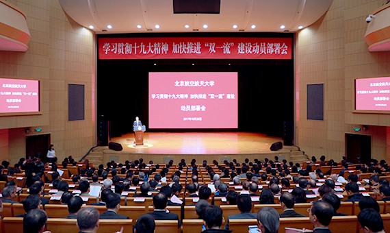 站在中国特色社会主义新时代,中国高等教育新起点,世界一流大学建设新征程的舞台上,全体北航人满怀憧憬和信心。让我们更加紧密地团结在以习近平同志为核心的党中央周围,不忘初心、牢记使命,学习好、宣传好、贯彻好党的十九大精神,自觉内化于心、外践于行,使党的十九大精神在北航落地生根,奋力谱写建设扎根中国大地的世界一流大学的新篇章,以北航梦、空天梦助力实现中华民族伟大复兴的中国梦!