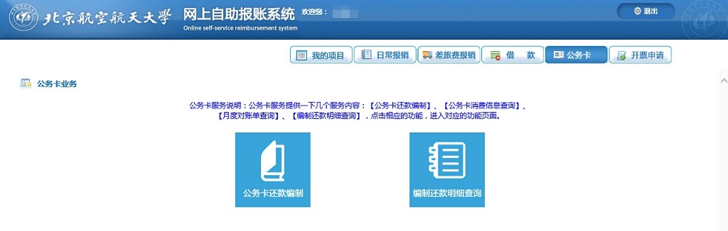 (三)网上编制公务卡消费记录后,网上填写日常、差旅费报销单或借款单,支付方式选择公务卡并对应之前编制的消费记录。