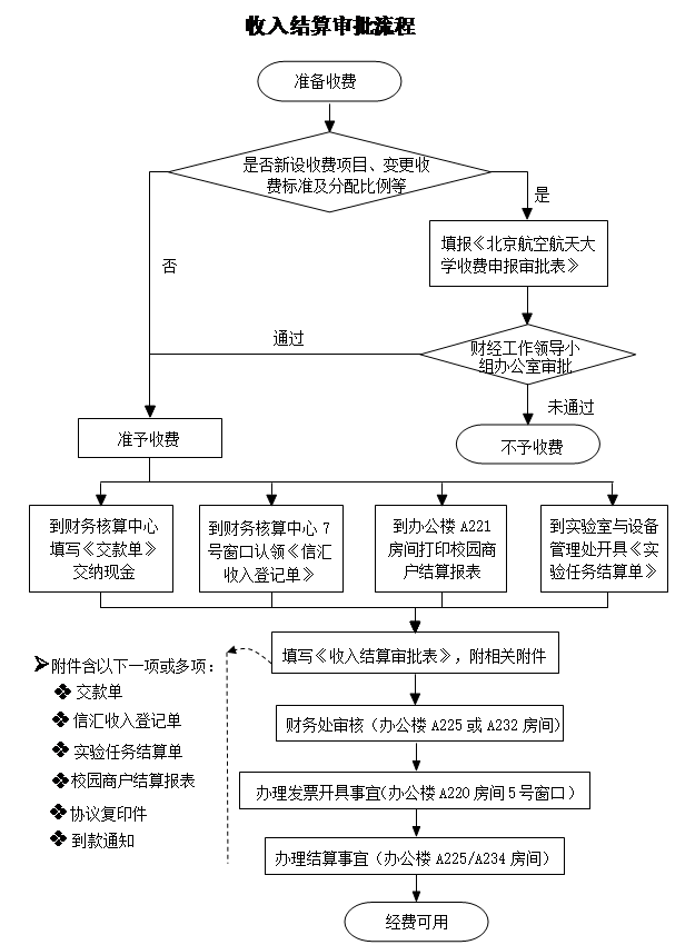 5.财务审核:经办人持《收入审批结算表》、资金到款证明及相关附件,提交财务处审核人(办公楼A232或A225房间)审核;